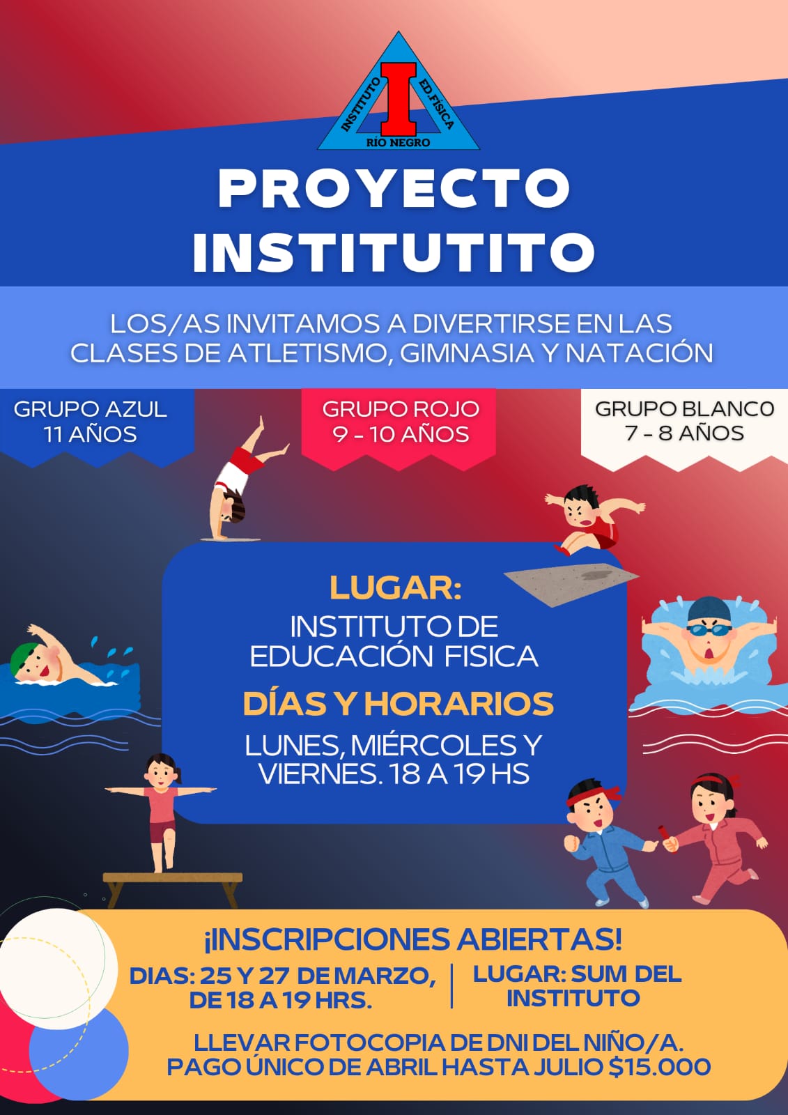 Los invitamos a divertirse en las clases de atletismo, gimnasia y natación